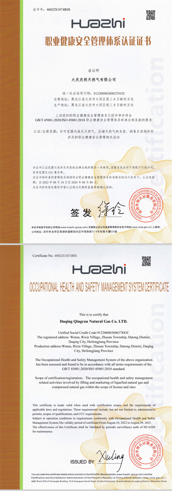 職業(yè)健康安全管理體系認(rèn)證證書(shū)